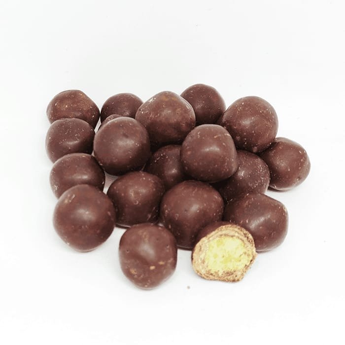 Avellanas con cobertura de cacao, ricas en antioxidantes y grasas saludables. Perfectas como snack funcional.